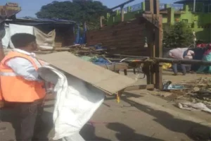 Ranchi: जिला प्रशासन और रांची नगर निगम की ओर से हरमू पंच मंदिर स्थित हरमू बाजार रोड में रविवार को अतिक्रमण हटाओ अभियान चलाया गया. अभियान में 3 ट्रैक्टर, 3 हल्ला गाड़ी, 2 जेसीबी के साथ निगम की इनफोर्समेंट टीम व सुरक्षा के लिए पुलिस बल भी बड़ी संख्या में मौजूद थे. अभियान के तहत करीब सड़क के दोनों ओर से करीब 25 से अधिक बांस बल्ली, एल्बेस्ट की दुकानों को हटा कर अतिक्रमण मुक्त किया गया. हटाए गए दुकानों में मांस, मछली, बैग, सब्जी, कपड़ा, पूजन सामग्री, ठेला, गुमटी आदि की दुकानें शामिल हैं. सुबह अभियान शुरू होते ही हरमू बाजार रोड में अफरा-तफरी मच गई थी. अभियान में दुकानों के बस, बल्ली, तिरपाल, एल्बेसेटर, गुमटी आदि सामग्री हल्ला गाड़ी में जब्त किया गया. मालूम हो कि हरमू बाजार रोड के पीछे की सड़क में सब्जी दुकानें लगती हैं. अभियान के डर से सभी दुकानदार अपने दुकानों के बांस, बल्ली, तिरपाल और एलेबेस्ट हटाते दिखे.