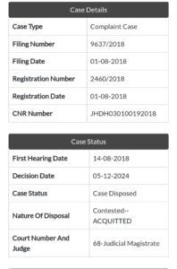 धनबाद न्यायालय से उत्पाद अधिनियम की धारा 47ऐ के अंतर्गत, आरोपी पप्पू कुमार को श्री हेमंत कुमार सिंह, प्रथम श्रेणी न्यायिक दंडाधिकारी, धनबाद ने साक्ष्य के अभाओं मैं रिहा कर दिया,वही उत्पाद विभाग कि और से लोक अभियोजन श्रीमती वर्षा द्विवेदी ने परवी कि तो वही आरोपी कि और से युवा अधिवक्ता श्री राहुल कुमार अग्रावाल ने बहास किया! सहायक आयुक्त उत्पाद विभाग को गुप्त सूचना ने आधार पर दूहाटांड,धनसार मैं दिनाक 31/7/2018 को छापेमारी कि थी, ज़िसमे पुलिस पदाधिकारी सुरेश कुमार ने पप्पू कुमार को अवैध नकाली विदेशी शराब के 180 मिलीलीटर की 30 पेटी,(259 लीटर विदेशी) और देशी शराब 200 मिलीलीटर के 8 बोरा,( 240 लीटर देशी) शराब के साथ गिरफ्तार किया गया था, पप्पू कुमार वर्तमान में जमानत पे था !