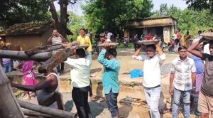पूर्वी टुंडी के मोहलीडीह गांव में रास मंदिर की छत ढलाई में सभी जातियों ने किया श्रमदान