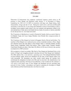 प्रवर्तन निदेशालय (ED) ने 21 नवंबर 2025 को पश्चिम बंगाल और झारखंड में अवैध कोयला तस्करी और मनी लॉन्ड्रिंग सिंडिकेट पर सबसे बड़ी संयुक्त कार्रवाई को अंजाम दिया।