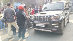 स्कूटी सवार युवती को स्कॉर्पियो ने मारी टक्कर, बीच सड़क पर हाई-वोल्टेज ड्रामा