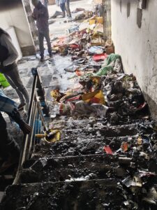 आग की चपेट में आने से मॉल के अंदर की दीवारें, सीढ़ियां, लिफ्ट एरिया और कई दुकानें बुरी तरह क्षतिग्रस्त हो गई हैं। चारों ओर जले हुए सामान और काले धुएं के निशान दिखाई दे रहे हैं, जिससे भारी नुकसान का अंदाजा लगाया जा सकता है।
