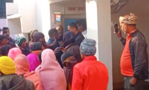 युवक को गोली मारने के विरोध में तेतुलमारी थाना पर सैकड़ों ग्रामीणों का हंगामा