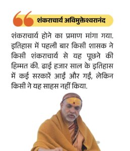 शंकराचार्य अविमुक्तेश्वरानंद ने कहा कि यदि सरकार अपने हिंदू होने का प्रमाण नहीं दे सकती, तो उसे भगवा वस्त्र धारण करने का अधिकार भी नहीं है।