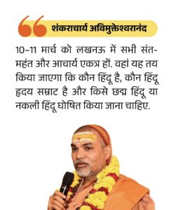 उन्होंने आगे बताया कि दिल्ली जाने का कार्यक्रम था, लेकिन अब 10 और 11 मार्च को लखनऊ में संत-महंतों और आचार्यों की बड़ी बैठक होगी, जिसमें यह तय किया जाएगा कि कौन वास्तविक हिंदू है और कौन छद्म हिंदू।