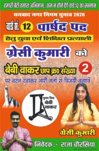 वार्ड संख्या 12 की पार्षद प्रत्याशी ग्रेसी कुमारी का संकल्प