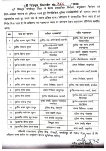 इस संबंध में आधिकारिक सूची भी जारी कर दी गई है, जिसमें कई थानों के प्रभारी अधिकारियों को इधर से उधर किया गया है। नए पदस्थापन के साथ ही सभी अधिकारियों को जल्द से जल्द अपने नए पद पर योगदान देने का निर्देश दिया गया है।