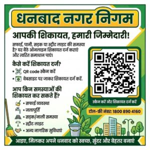 धनबाद नगर निगम ने शहरवासियों की समस्याओं के त्वरित समाधान के लिए एक अहम डिजिटल पहल की है। मेयर संजीव सिंह के निर्देश पर नगर निगम ने विभिन्न नागरिक सुविधाओं से जुड़ी शिकायतों के लिए QR कोड जारी किया है।