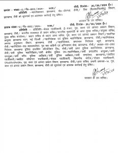 40 डीएसपी का हुआ तबादला, रांची के सिल्ली, बेडो और खलारी डीएसपी का भी हुआ तबादला।